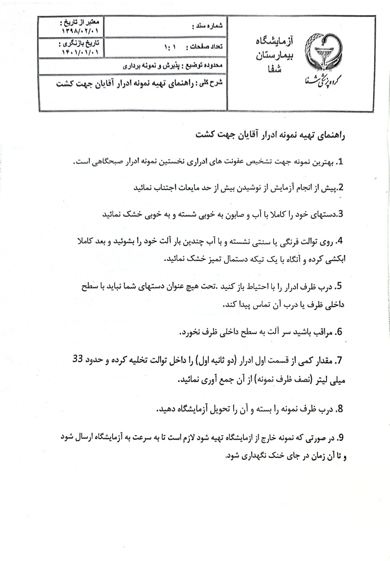 راهنمای تهیه نمونه ادرار آقایان جهت کشت